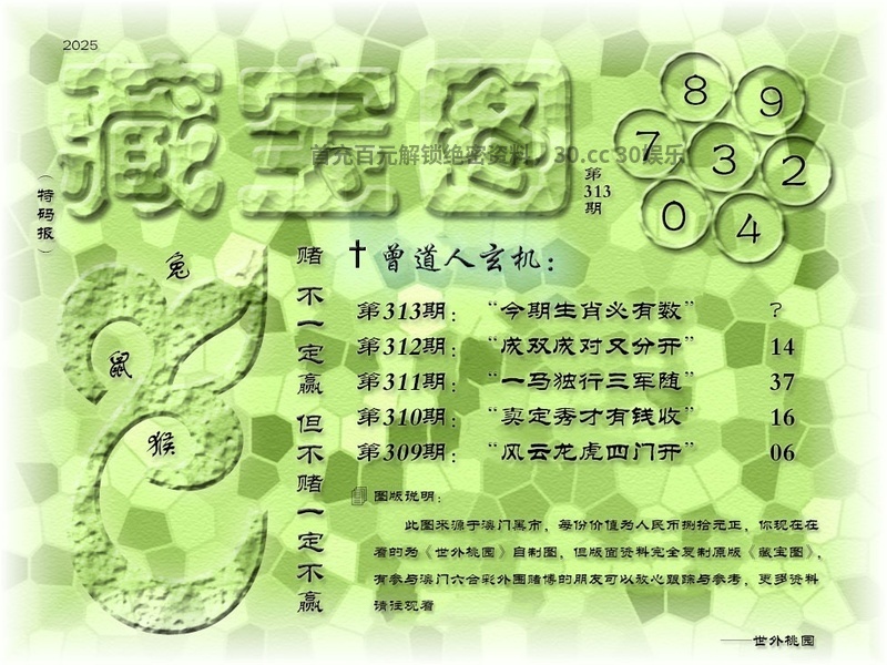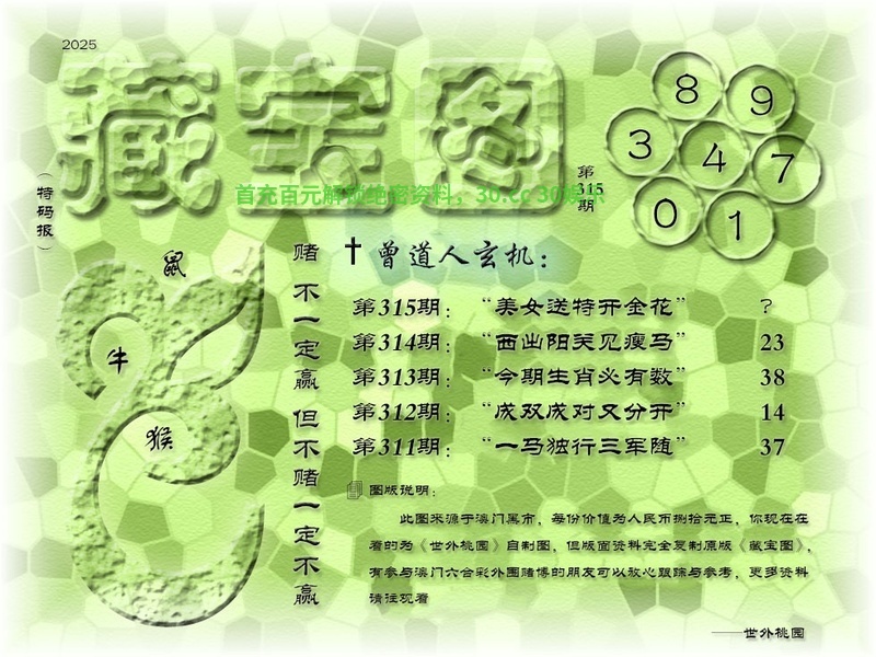317期藏宝图曾道人玄机:更新 解:更新 解特肖:更新 |